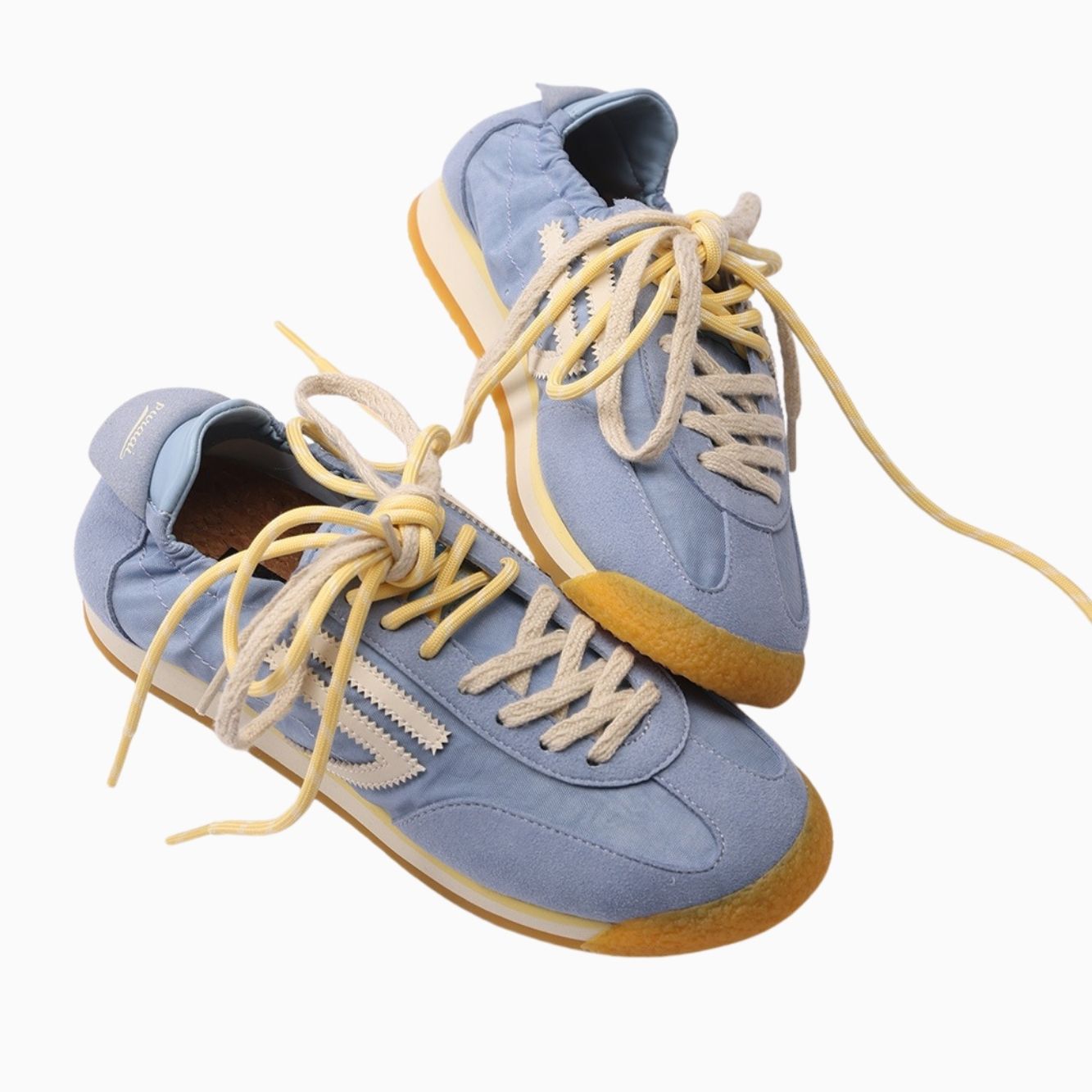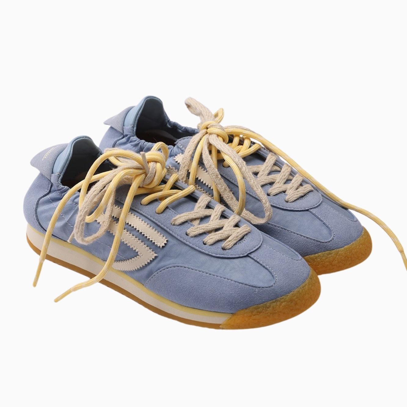 Suola gialla, beige chiaro e color miele, lacci doppi gialli e beige chiaro.